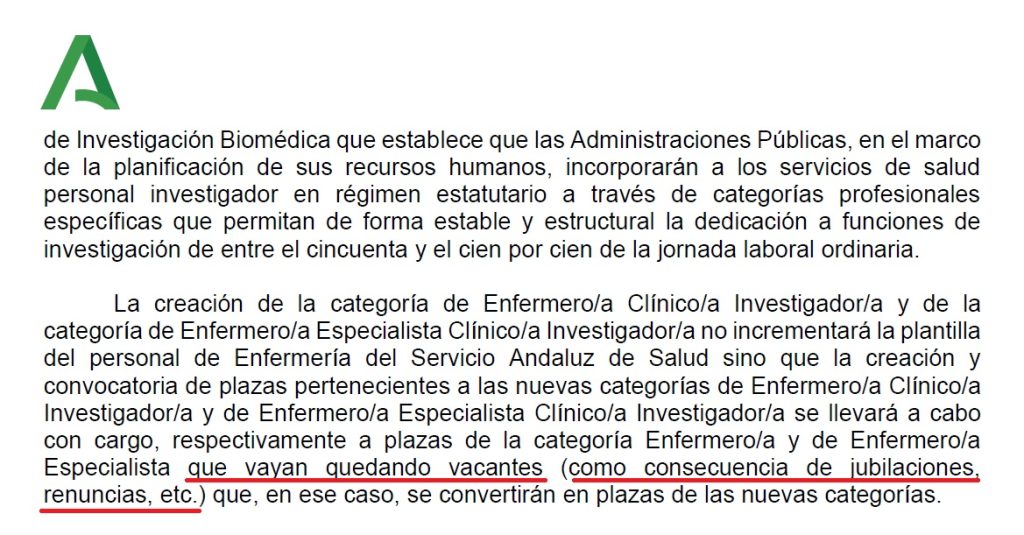 Lo que sí puede deducirse es que, al resto de sindicatos, nada les importa que se reduzcan las plazas de facultativos especialistas y de enfermeras en el SAS para crear las nuevas plazas de investigadores, a sabiendas de que, según los dos proyectos de orden, podrán dedicarse exclusivamente a la investigación entre el 50 y 100% de la jornada, dejando reducido el tiempo dedicado a la asistencia a los pacientes.