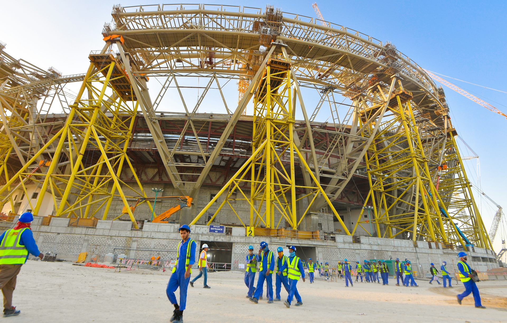La construcción desde la nada y en el desierto de la sede del mundial, la ciudad de Lusail, simboliza el esfuerzo de Catar por proyectar una imagen internacional impactante y mostrarse como una gran potencia económica. Sin embargo, una gran cantidad de obras imprescindibles para cumplir el compromiso adquirido, la presión del plazo y las condiciones climáticas en un Estado que sistemáticamente viola los derechos de las personas no constituían un buen presagio.