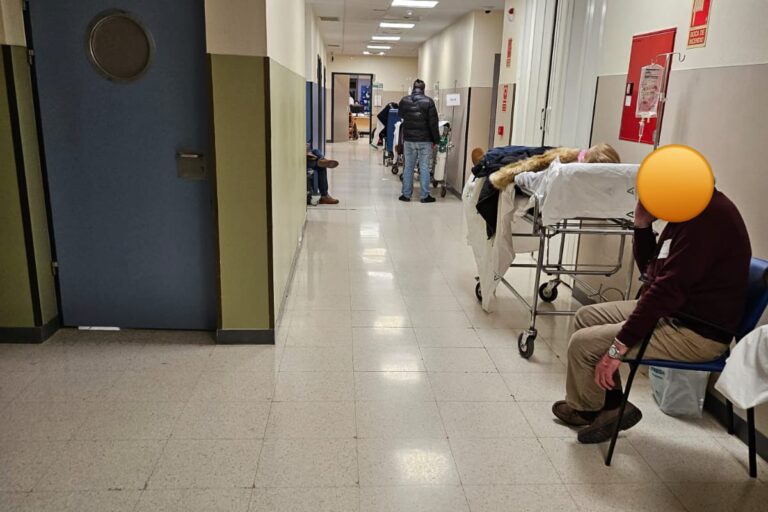 Una imagen exclusiva de cómo estaban el 10 de enero de 2024 las Urgencias del Hospital Juan Ramón Jiménez, con gente por los pasillos esperando a ser atendida. / EL LIBRE